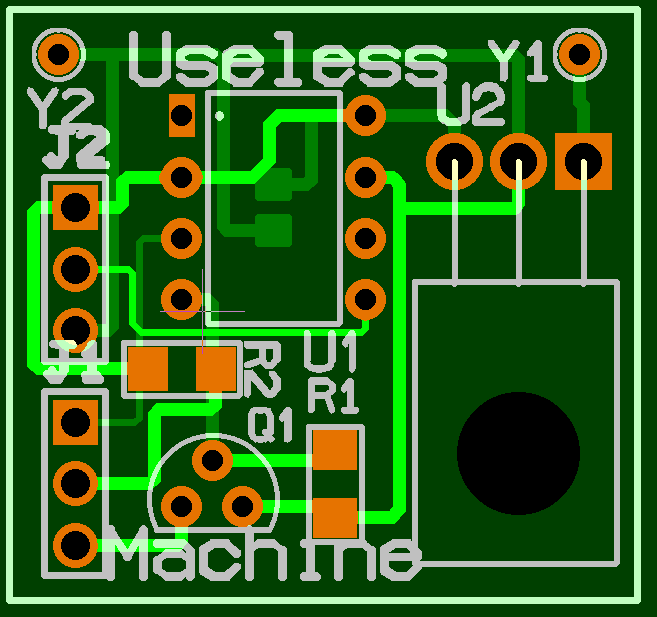 This is a box with a switch... when you flip the switch on, a finger comes out of the box and flips the switch back off. Useless, but a great learning project for PIC's and servos with a fun result. The PIC used is a 10F206 and any common hobby servo should be fine.